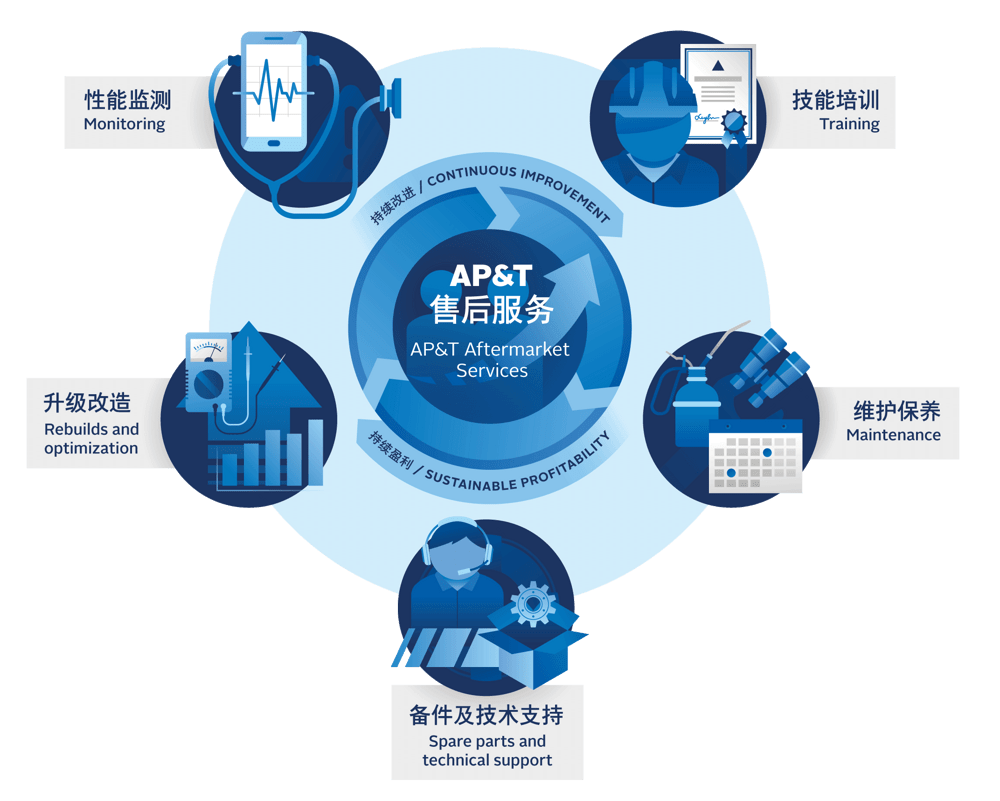专业的维修保养是一项可盈利性的投资。AP&T提供了一系列不同的解决方案,使您的设备处于极佳性能,并确保生产安全。
